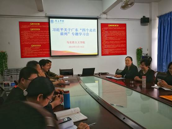 3月14日,williamhill威廉希尔官网党总支理论中心组学习扩大会议在院会议室举行,会议由曹顺霞书记主持。党员认真学习了习近平在3月7日参加十三届全国人大一次会议广东省代表团讨论时发表的重要讲话精神。党的十八大召开以来,习近平非常关注广东的发展,从2012年对广东提出“三个定位,两个率先”、2017年提出“四个坚持、三个支撑,两个走在前列”到这次对广东提出“四个走在全国前列”,反映了中央对我省的期望。党员老师表示一定要认真学习习总书记讲话精神,贯彻到自己的教学教研工作中,努力为把我省建设成为向世界展示践行习近平新时代中国特色社会主义思想、展示我国改革开放成就、国际社会观察我国改革开放的“重要窗口”和“示范区”做出应有贡献。