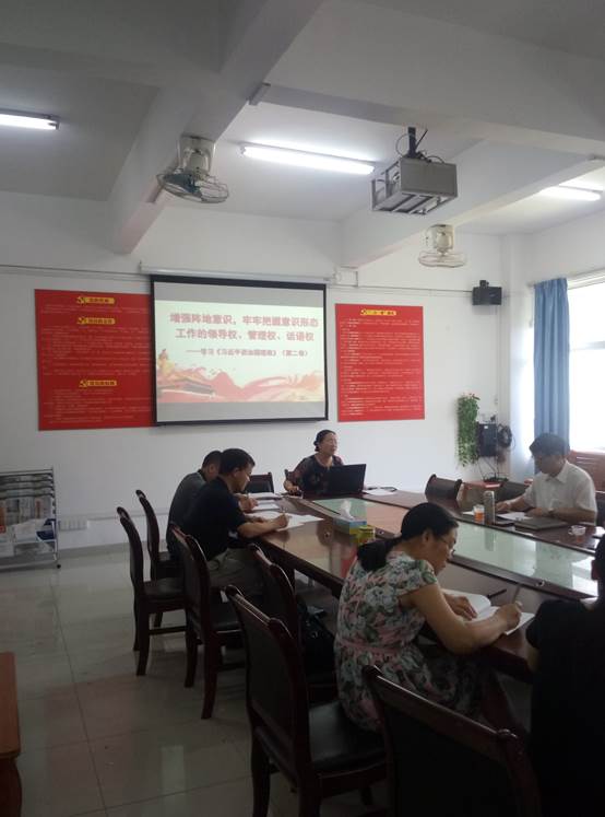 日前,学校党委副书记叶峥嵘同志到我院参加中心组理论学习,williamhill威廉希尔官网党总支中心组成员参加了学习,学院院长兼党总支书记曹顺霞作了“增强阵地意识,牢牢把我意识形态工作的领导权、管理权、话语权”中心发言。理论学习以《习近平谈治国理政》(第二卷)“坚持和巩固党对意识形态工作的领导”为主要内容,分析了意识形态工作面临的严峻形势,强调要加强对意识形态阵地的管理,高度重视苗头性、倾向性问题,敢抓敢管、敢于亮剑。叶峥嵘副书记也作了重要发言,指出把中心组学习和理论学习、理论研究结合起来是一种很好的形式,强调要提高政治站位,把思想和行动统一到党中央上来;同时要保持高度的警惕,认清意识形态面临的严峻形势;严格管理,防范各种风险的发生。