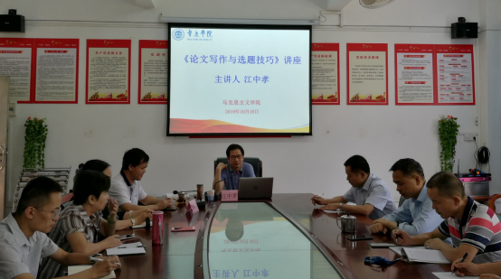 结合学校开展的“不忘初心,牢记使命”主题教育活动,为有效提升马院教师科研水平,10月18日下午,williamhill威廉希尔官网邀请《广东社会科学》杂志社总编江中孝研究员做了“论文写作及选题技巧”专题讲座,马院全体教师参加了讲座。