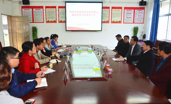 日前,省委宣传部杜新山副部长在学校党委书记曾桓松陪同下到马院调研,与williamhill威廉希尔官网领导班子和教师代表进行了座谈。院长曹顺霞汇报了我校马院的基本情况及思政课建设的特色亮点。杜新山寄语马院把握好思政课堂主渠道,加强习近平新时代中国特色社会主义思想的研究,在青年学子中全面系统地宣讲好十九届四中全会精神,激励同学们坚定理想信念,强化担当作为,刻苦学习,积极实践,努力实现德智体美劳全面发展,为将来更好地参加中国特色社会主义建设事业做好充分准备。