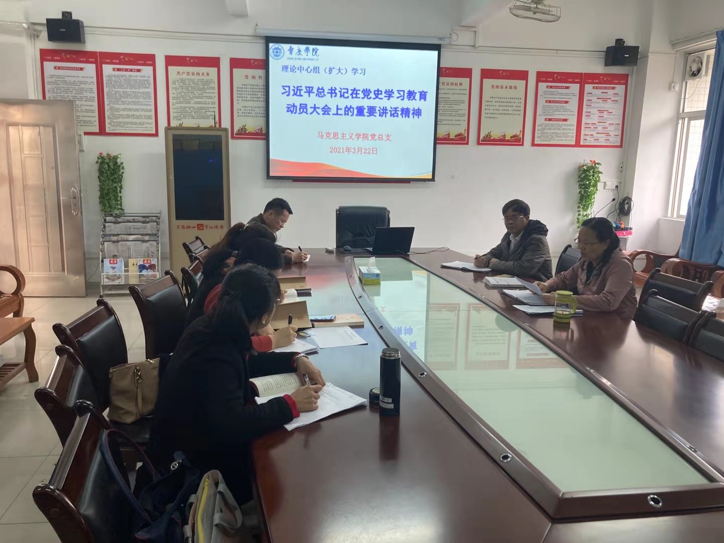 近日,williamhill威廉希尔官网召开理论学习中心组(扩大)学习会议,深入学习领会习近平总书记在党史学习教育动员大会上的重要讲话精神,马院党总支委员、支部书记参加了学习。