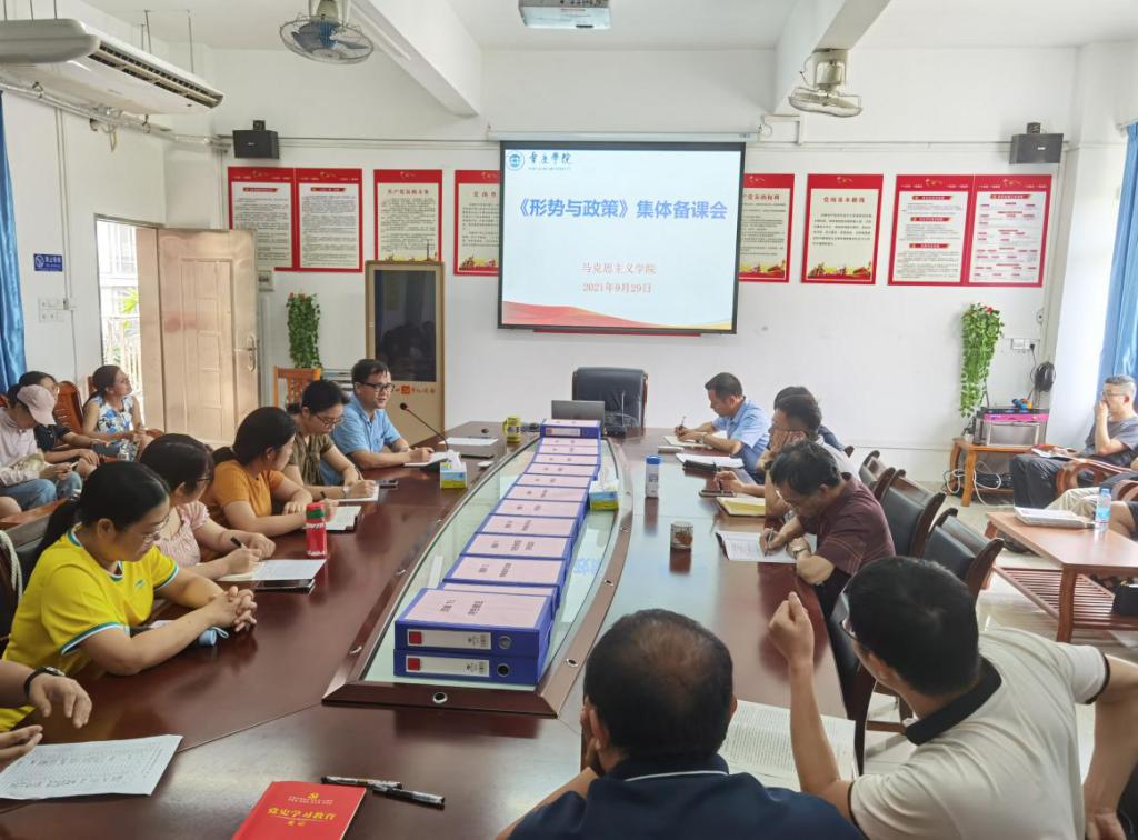 为深入贯彻习近平总书记“七一”重要讲话精神,上好新学期的形势与政策课,推进习近平新时代中国特色社会主义思想进教材、进课堂、进头脑,推动党史学习教育走深走实。9月29日下午,我院全体教师及兼职教师参加了集体备课会,会议由曹和修副院长主持。