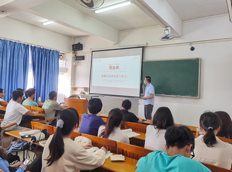 为进一步在学生群体中宣传《民法典》知识,让广大学生能够树立学法、用法、守法的观念,williamhill威廉希尔官网张海鹰老师和任长鹏老师深入到学生的课堂中去给学生细致地讲解了《民法典》。这在广大学生中营造了学法典、用法典的良好氛围。