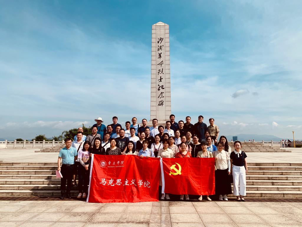首先,马院全体党员教师来到沙浦革命烈士纪念碑广场,在烈士碑前缅怀革命先烈的丰功伟绩,追忆革命前辈为了民族独立和人民幸福浴血奋战、向死而生的苦难辉煌。随后,举行了重温入党誓词活动,由曹和修副院长领誓,全体党员面向党旗,举起右拳庄严宣誓,再一次接受了心灵的洗礼,进一步坚定了理想信念、增强了历史责任感。