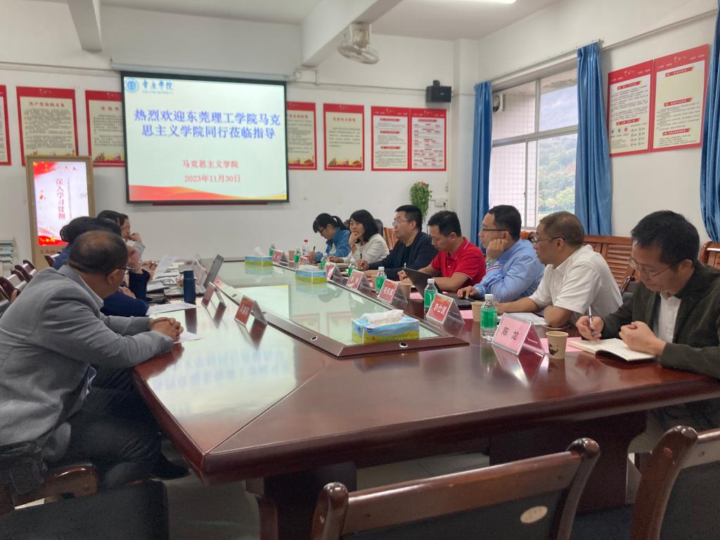 11月30日,东莞理工学院williamhill威廉希尔官网党委书记、院长刘健一行9人到我校,就审核评估情况、学院教学改革等与我校马院进行了交流。曹顺霞院长介绍了马院在审核评估中的角色定位以及如何做好评估前的准备和迎评工作,并结合“一体两翼三支撑”思政课改革创新模式介绍了我校马院建设情况,教师们还就课程建设、教学改革等问题进行了深入的探讨。