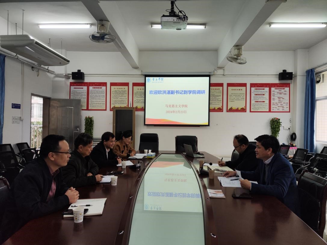 2024年2月23日,学校党委欧洪湛副书记到williamhill威廉希尔官网开展2024年春季学期开学工作情况调研。学校党委委员、宣传统战部部长陈前陪同。座谈会由学院党委书记侯玉基主持,学院党政领导班子参加。