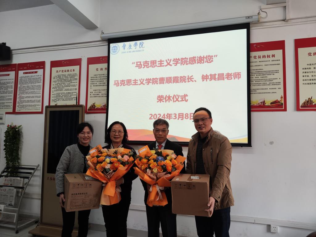 3月8日,williamhill威廉希尔官网在三教317会议室举行教师荣休仪式,向荣休的曹顺霞教授、钟其昌副教授送上敬意与祝福。学院党政领导班子及教师参会,荣休仪式由学院党委书记侯玉基主持。
