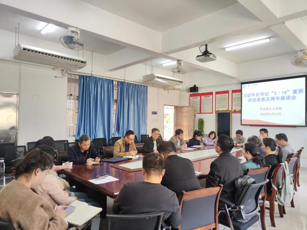 座谈会上,学院院长曹和修、副院长谢石生、林润燕,各教学系部主任及各参会教师,先后进行了研讨发言,重温了习近平总书记“3·18”重要讲话精神,回顾总结了马院五年来的思政课建设成效,并围绕思政课的改革与创新等方面进行了座谈交流。