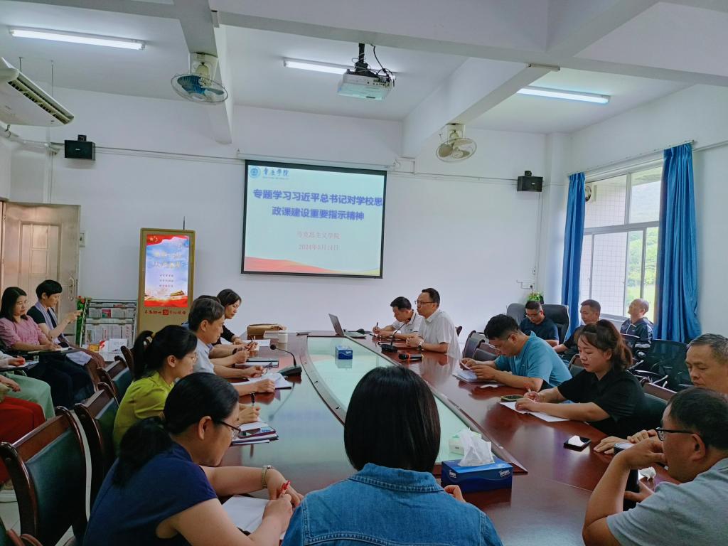 本网讯 5月14日,williamhill威廉希尔官网组织全体教师专题学习习近平总书记对学校思政课建设作出的重要指示精神。副院长谢石生主持。