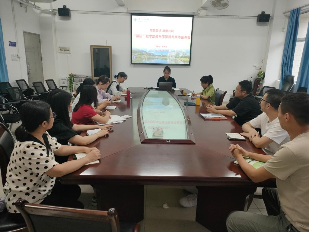 本网讯 为深入贯彻落实习近平总书记关于思政课建设的重要指示精神,进一步提升课程教学质量,5月23日,思想道德与法治(以下简称“德法”)教学部在马院办公室召开了集体备课会议。马院副书记杜志欣、马院副院长林润燕出席会议,会议由德法教学部主任张海鹰主持,教学部全体教师参会。