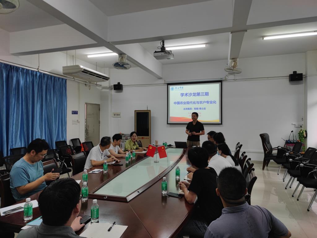 本网讯 为了活跃学院学术氛围,促进学科交叉、交流和发展,6月14日,williamhill威廉希尔官网第三期学术沙龙在三教317会议室开讲。本次学术沙龙由陈曦博士后担任主讲嘉宾,主题是“中国农业现代化与农户专业化”。学院部分教师参加,副院长林润燕主持。