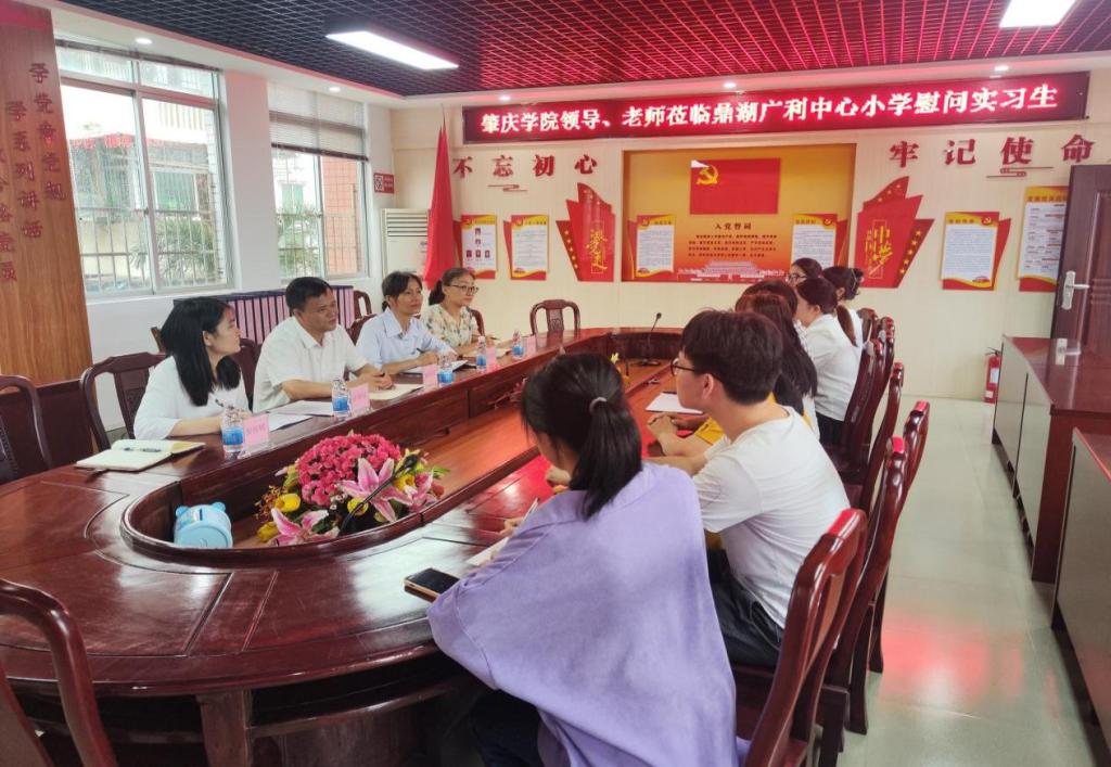曹和修一行先后前往了鼎湖第一实验学校(小学部)、鼎湖第一实验学校(初中部)、鼎湖区广利高级中学、鼎湖区广利中心小学、鼎湖区吴大猷学校、鼎湖区新区中心小学等学校单位。期间,曹和修一行与实习学校负责领导、实习带教老师、实习学生开展座谈会。
