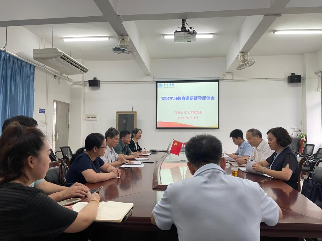 本网讯 6月11日,学校党纪学习教育工作督导组成员、校党委委员、组织部部长兼党政办公室主任谭冠中、校宣传统战部副部长曾丹凤、组织部副科级专职组织员蔡树培到我院开展党纪学习教育督导调研。学院党委书记侯玉基、院长曹和修、副书记杜志欣及办公室主任、各教学部主任、专职组织员参加座谈交流。