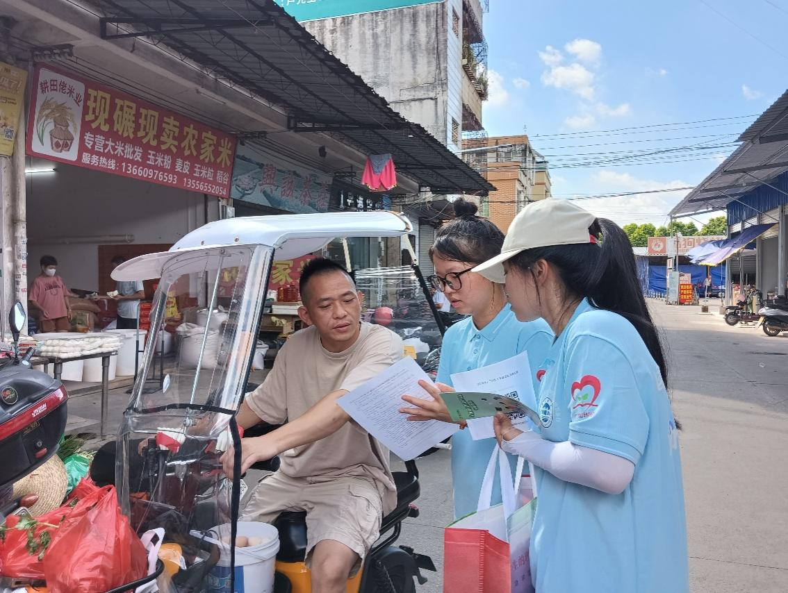 本网讯 为确保教育工作的落实,助力百千万工程,7月10日,williamhill威廉希尔官网 “红心乡遇,溯往寻新”探访百千万工程沙头村实践团来到四会农商银行附近开展国家助学贷款宣讲活动。