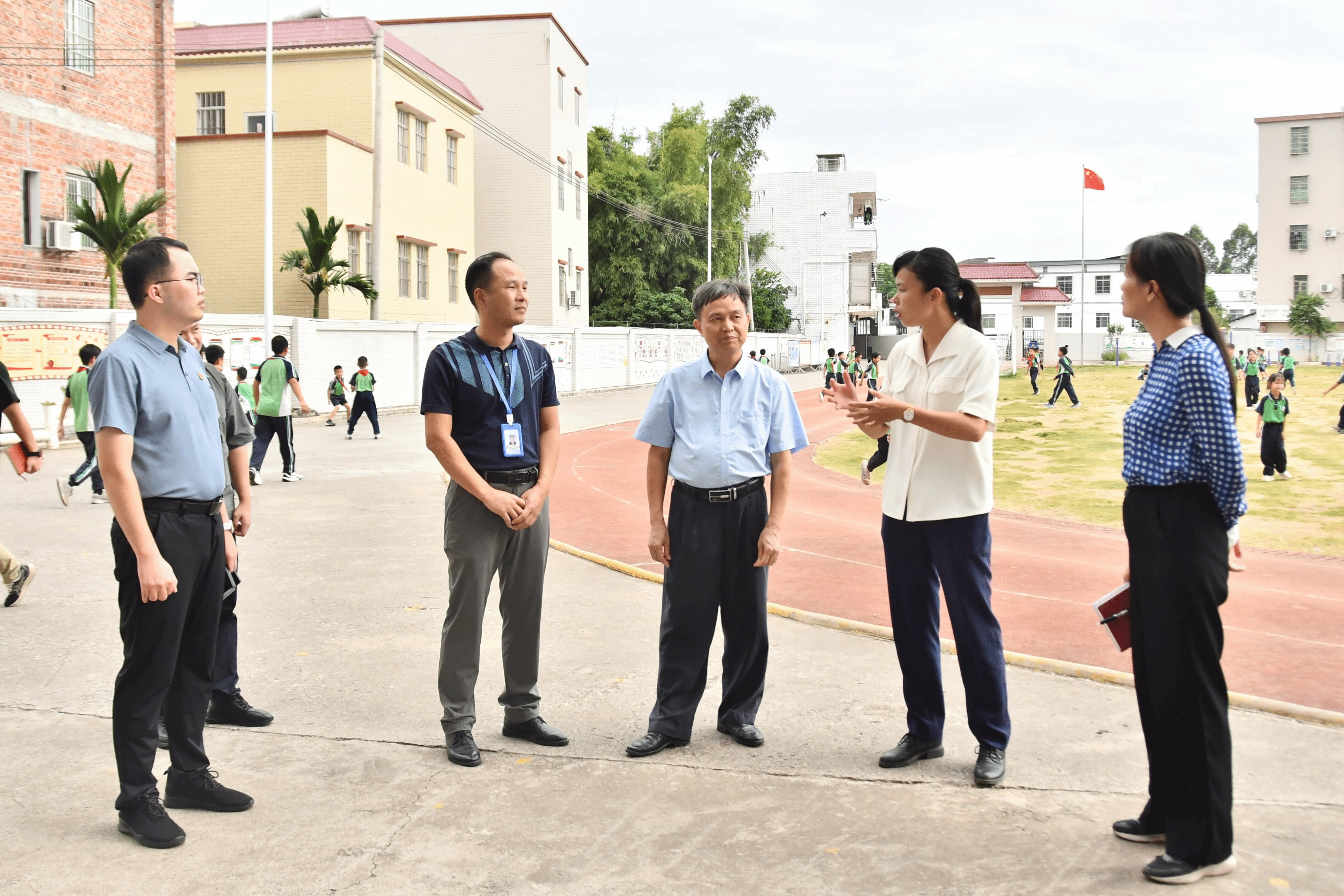 当天下午,学院党委书记侯玉基、党委副书记杜志欣、“三所学校”学生团队联系人罗栩,以及双东街道帮扶队老师黎锐楷、教师教育学院林江锋博士等一行组成的调研团队分别走访罗定市双东街中学、罗定市双东街中心幼儿园和罗定市双东街中心小学。期间,调研团队与罗定市双东街道的有关领导和学校校长园长一起进行实地调研,分别就帮扶工作的重点、学校建设发展实际情况、师资队伍建设等方面进行了深入的沟通交流,共同探讨“三所学校”和县中质量提升的策略,为后续帮扶工作的开展奠定了坚实基础。