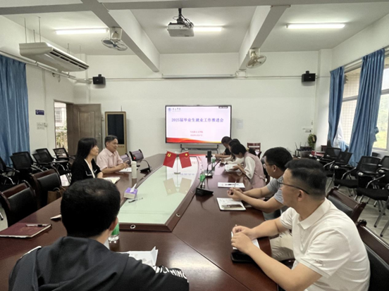 本网讯 为进一步推动学院毕业生高质量充分就业,4月27日下午,我院召开2025届毕业生就业工作推进会。党委书记侯玉基、副书记杜志欣、全体班主任以及辅导员等参加会议,会议由杜志欣主持。