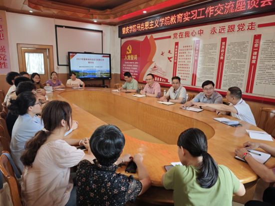 在各实习学校召开的座谈会上,实习学校负责人详细介绍了实习生岗位安排、教学指导及生活配套等具体措施,充分肯定了我院实习生扎实的专业素养、勤勉的工作态度和优秀的表现。实习生导师结合听课记录与日常观察,从教学设计、课堂驾驭、师生互动等维度逐一进行点评,高度赞扬学生理论联系实际的综合能力。实习生们结合自身实习经历,分享了从“师范生”到“准教师”角色转换的成长感悟。谢石生副院长代表学院向各实习单位表达了诚挚的谢意。他指出,四所学校作为长期合作基地,始终以高度责任感落实“双导师制”,为我院人才培养提供了优质的实践平台。他强调,实习是师范生锻造师魂、精进技能的关键环节,并对实习生提出四点期望:一是秉持谦逊态度,虚心向指导教师求教,全力锤炼教学基本功;二是严格遵守实习学校纪律,时刻将人身安全放在首位;三是保持反思习惯,从日常教学中凝练育人智慧;四是紧跟时代步伐,积极运用现代科技为教学赋能。他还向各个学校介绍了我院的本科生和研究生师范生培养情况,向各单位进行毕业生就业推介,探索与各学校的合作机会,促进思想政治教育工作高质量发展。