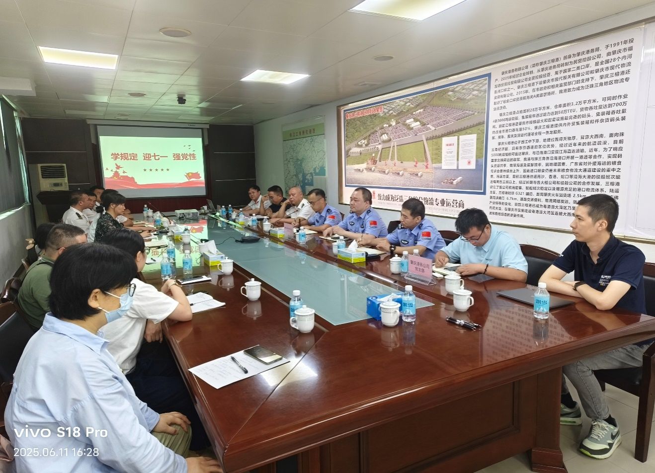 本网讯 为持续推进全面从严治党,推动作风建设向纵深发展,6月11日下午,肇庆学院williamhill威廉希尔官网“概论”教学部教师党支部与肇庆海关三榕港监管科党支部、肇庆港口海事处党支部、肇庆边检站执勤四队党支部、肇庆边检站执勤二队党支部、肇庆港务公司党支部联合开展“学规定 迎七一 强党性”主题联学共建活动,在理论联学、案例警示、实践对标学习中共同汲取奋进力量。