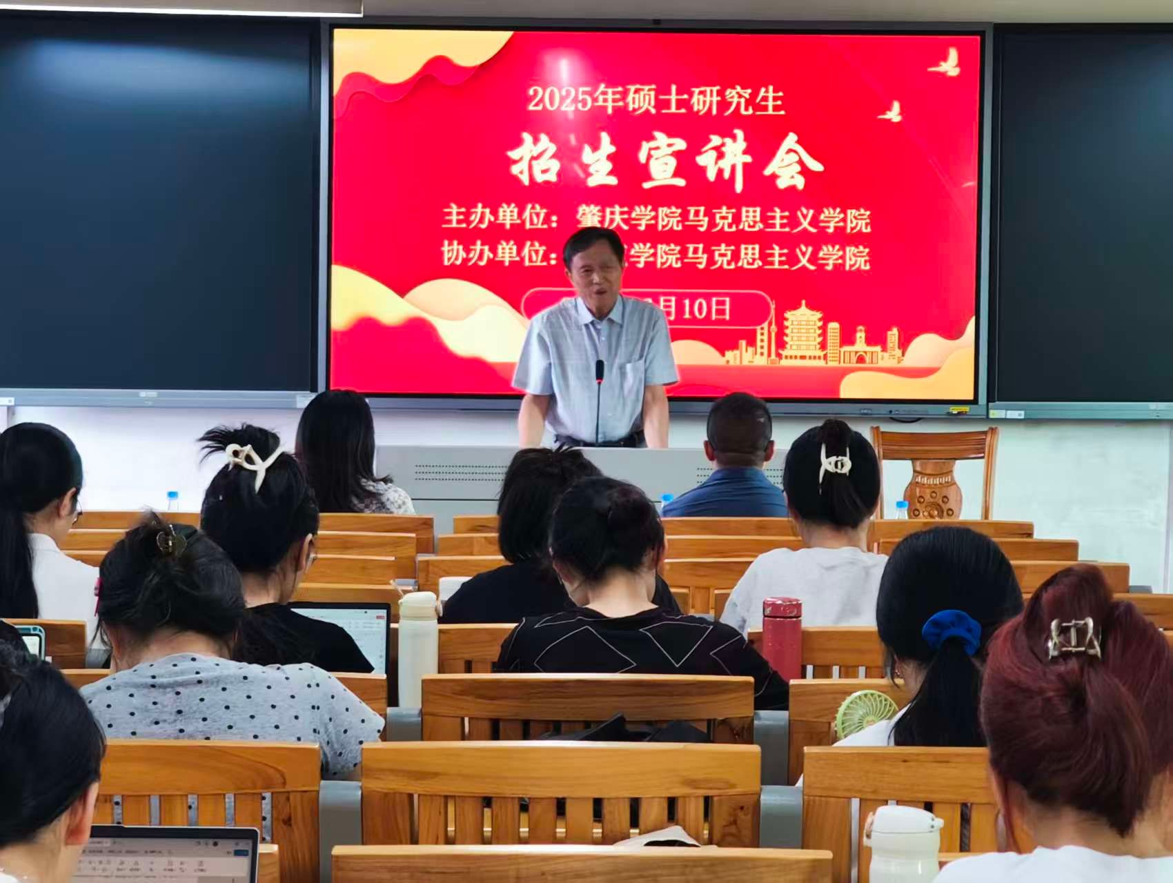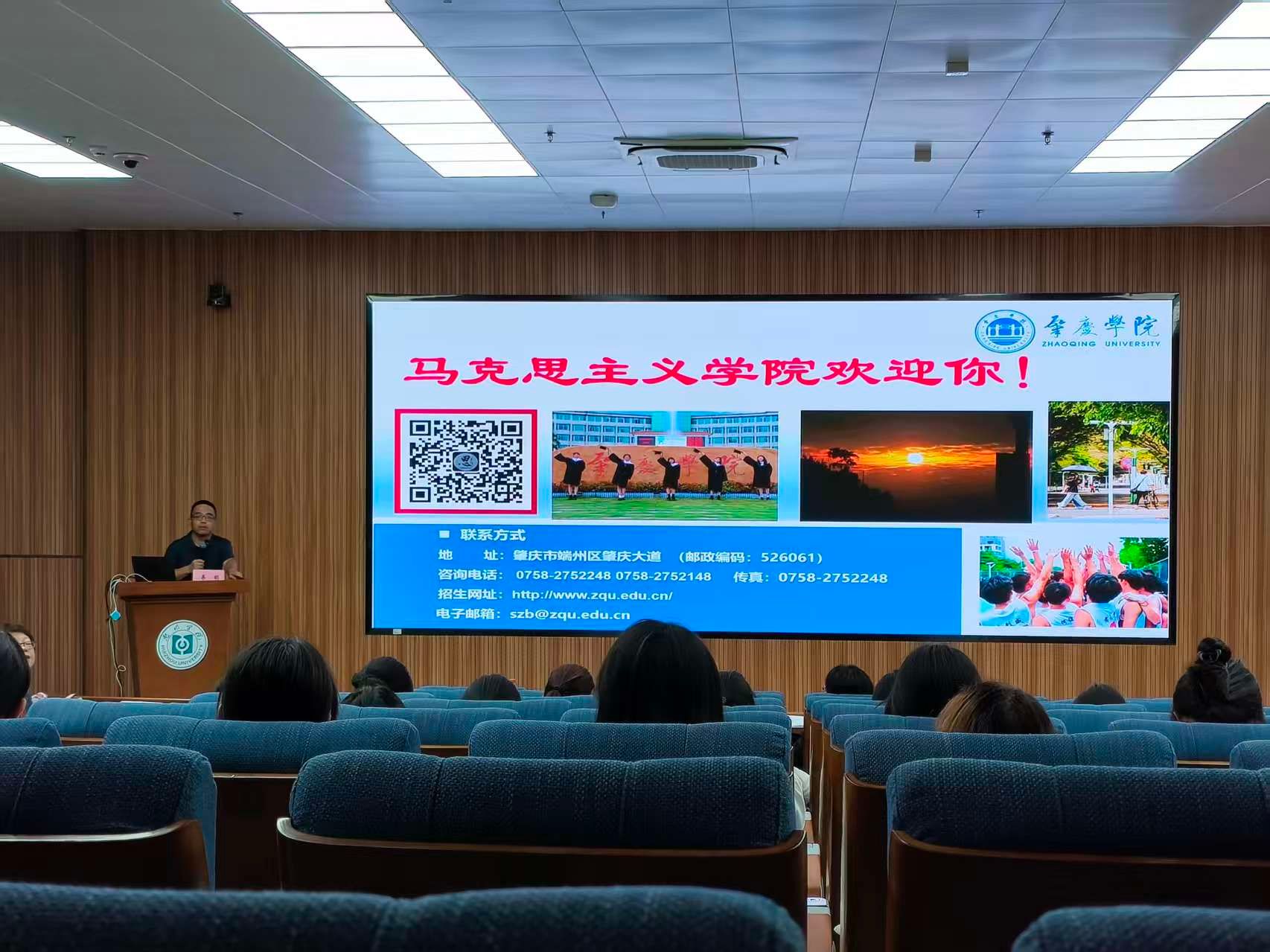 主讲人通过现场宣讲、学校招生宣传片播放、招生手册发放、互动问答等形式详细介绍学校学院情况、建设成就、所获荣誉、研究生培养特色与成效等内容。宣讲期间,侯玉基书记还分别与兄弟院校马院领导、教师就党建品牌创新、支部建设、学生就业、红色实践平台建设等工作内容进行广泛交流。此次招生宣传充分介绍了肇庆的大湾区地域特色、广泛宣传了学校的办学实力和招生政策、详细推荐了我院的发展历程、师资力量、学科建设成效、培养特色、就业优势、研究生学习生活环境等,取得了预期的宣传成效。