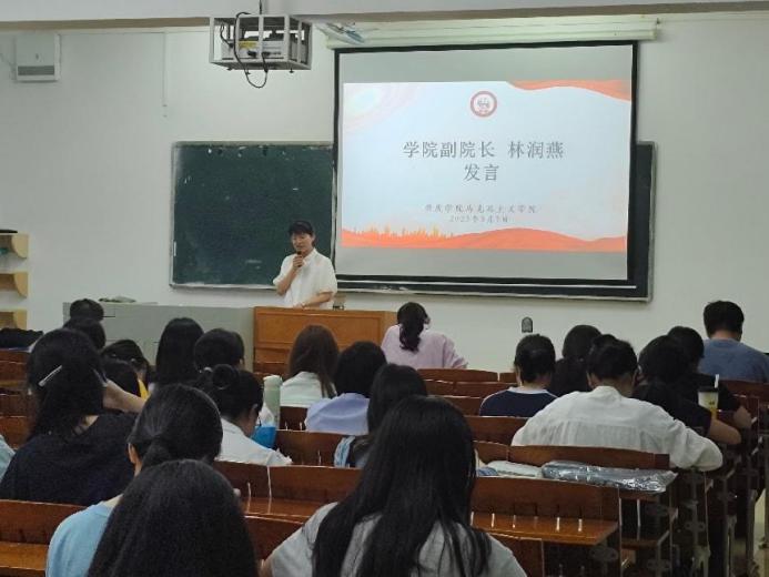 学院副院长林润燕寄语学院毕业生,要坚守做思政学子的初心,做坚定的马克思主义信仰者,传播者。希望同学们要脚踏实地从基层做起,毕业后要不断锤炼专业技能,提升专业素养,在工作中发挥自己的专业优势,为国家社会的发展和建设贡献自己的力量。