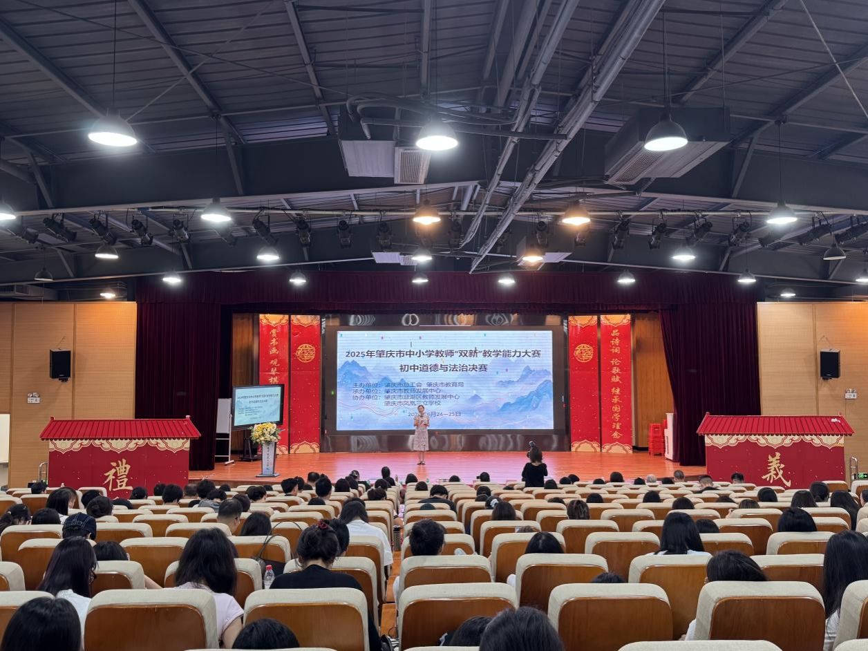 决赛现场,肇庆市优秀的初中道德与法治教师们登台竞技。他们紧扣“双新”(新课程、新教材)理念,围绕学科知识,结合案例、活动、运用AI赋能等多元形式授课,展现出对课程标准的深刻理解与教学创新实践。同学们认真聆听、记录,近距离感受一线教师教学风采,学习课堂设计与思政育人融合技巧。