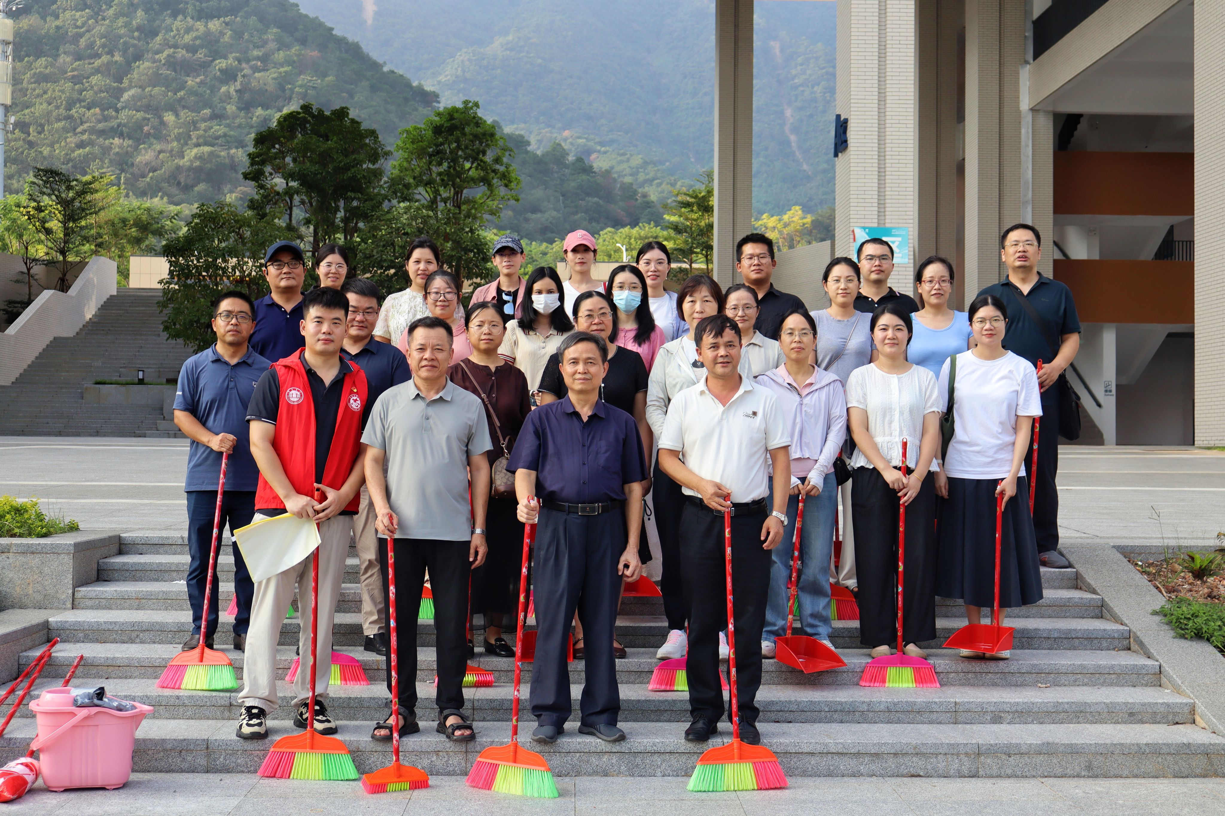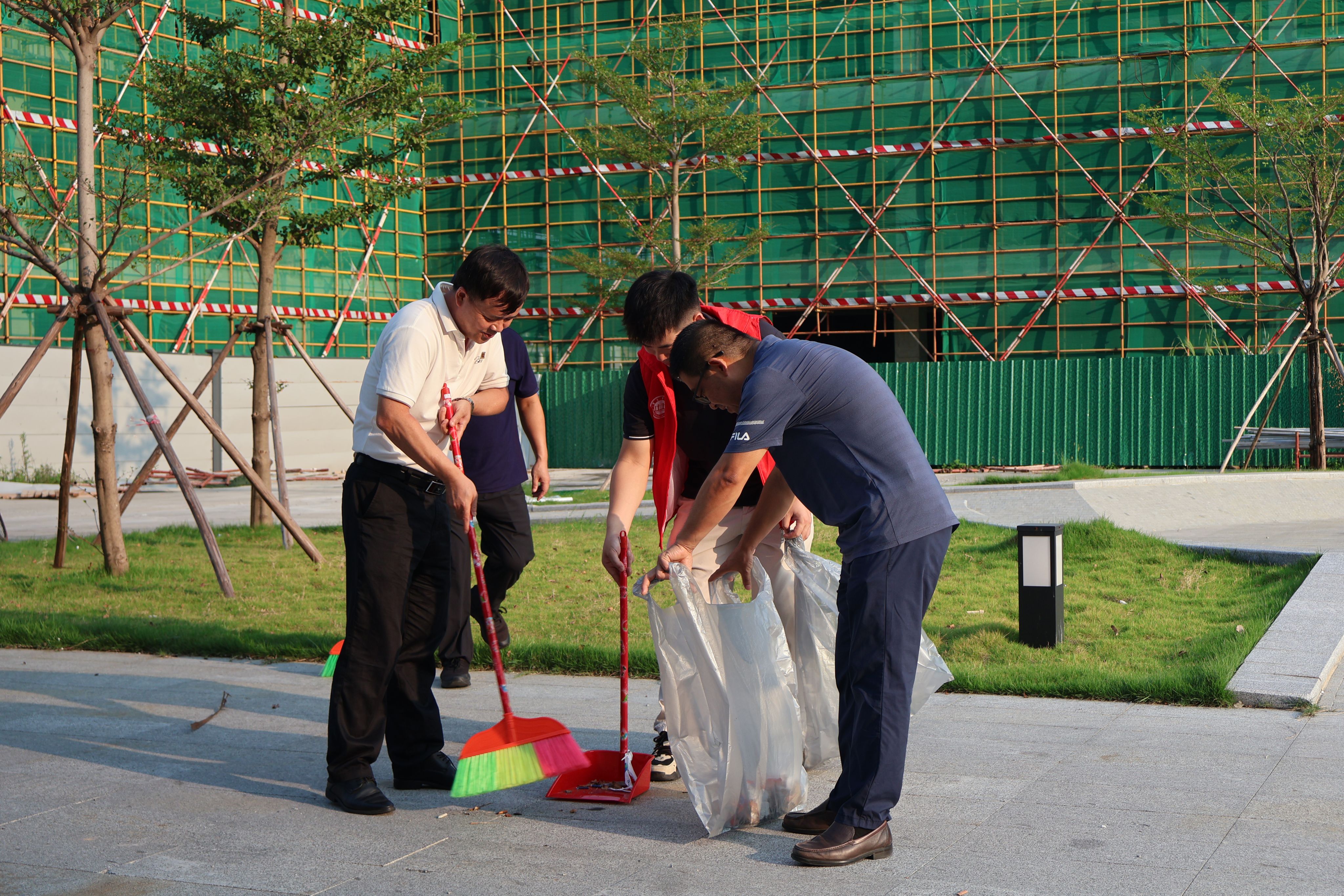 随后,学院师生代表在学院党委书记侯玉基和院长曹和修的带领下,在校园网格责任区域内开展了全面的卫生清理行动。谢冠华书记与我院师生一同参与到卫生整治行动中,以实际行动为师生们营造干净、安全的校园环境,也进一步激发了大家参与爱国卫生工作的积极性主动性。活动现场分工明确,有效协作,重点对区域内生活垃圾、建筑垃圾进行分类清运,对杂草枯枝进行集中清理,彻底清理了卫生盲区与死角。活动后,师生们纷纷表示后续将在学校学院的指导和带领下,持续参与网格责任区域、学生宿舍以及办公场所等场域的卫生维护,以实际行动助力打造整洁有序的校园环境,守护学校师生的生命健康安全。