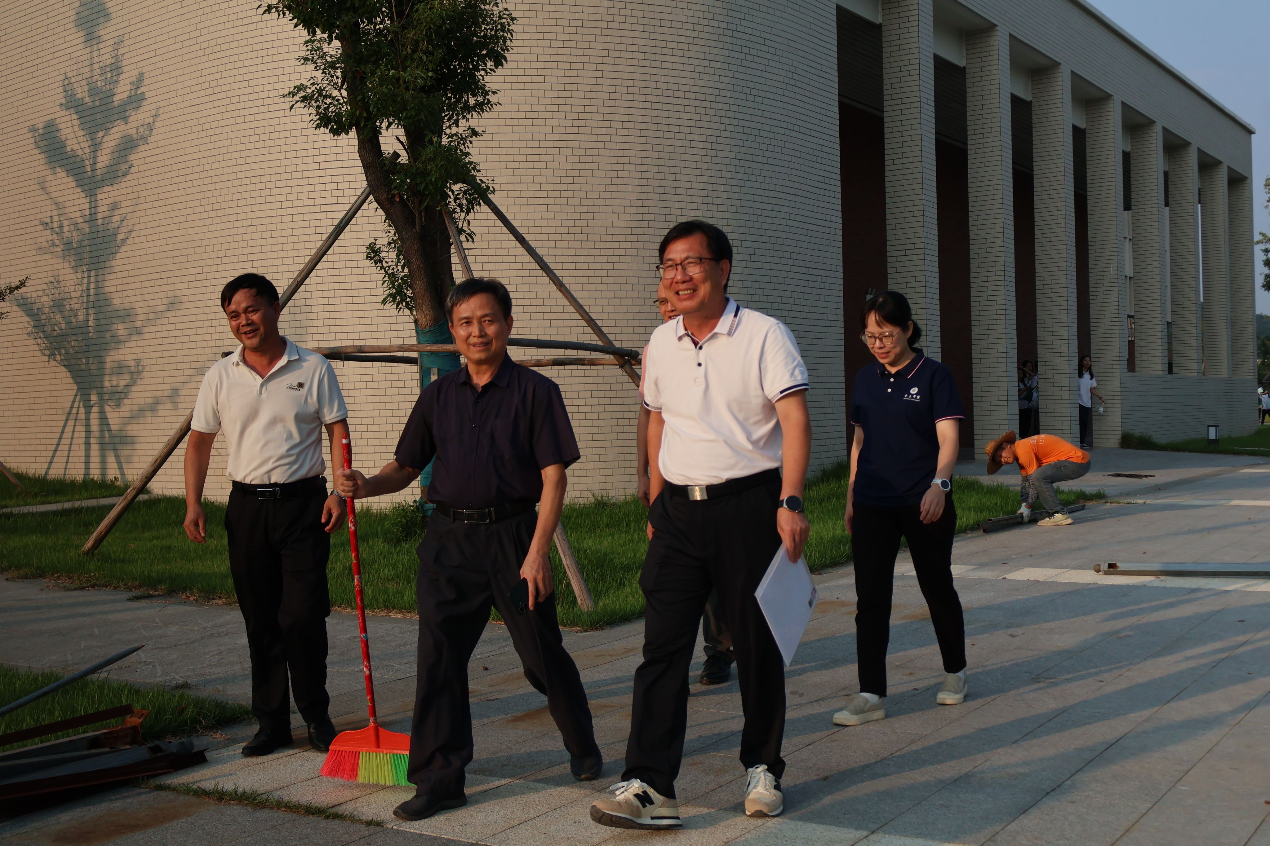 本网讯 为切实筑牢校园疫情防控防线,保障师生身体健康,10月10日下午,学校党委书记谢冠华带领校团委书记马舒洁等一行到我院校园网格责任区,对我院爱国卫生专项行动进行现场指导并参与整治工作。