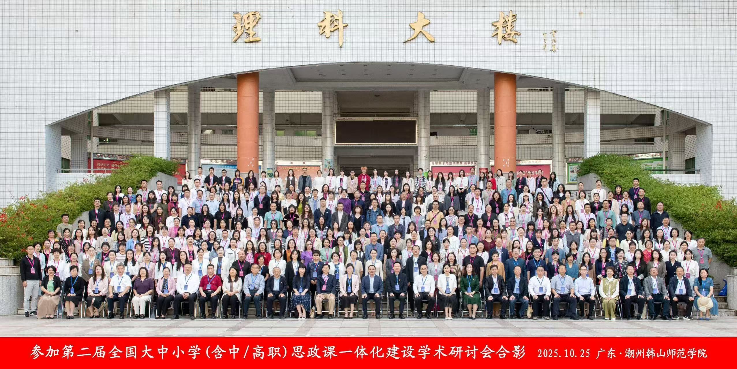 本网讯 2025年10月24日至27日,由上海交通大学出版社主办、韩山师范学院承办、肇庆学院williamhill威廉希尔官网等单位协办的第二届全国大中小学(含中/高职)思政课一体化建设学术研讨会在韩山师范学院举办。学院院长曹和修带领学院骨干教师一行与来自全国各地大中小学300多名专家学者、思政课优秀教师一同参与本次研讨会,共探思政育人衔接贯通的新路径。