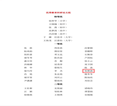 此次研讨会设主旨报告、高校(高职)学术研讨会和中小学优质思政课展示、优秀获奖成果展示交流等环节。我院副院长林润燕主持分会场的高校(高职)学术研讨会,院长曹和修教授在研讨会上作了题为“大中小学思想政治教育一体化建设进路”的主旨报告,其以地方特色开展思政课建设,推进大中小学思政教育一体化的实践和做法得到了与会专家学者的广泛认可。我院张维满老师投稿的论文《纵向衔接“横向联动”技术赋能——抗战精神融入大中小学思政课的三维突破》获研讨会评选为优秀教育科研论文组一等奖。
