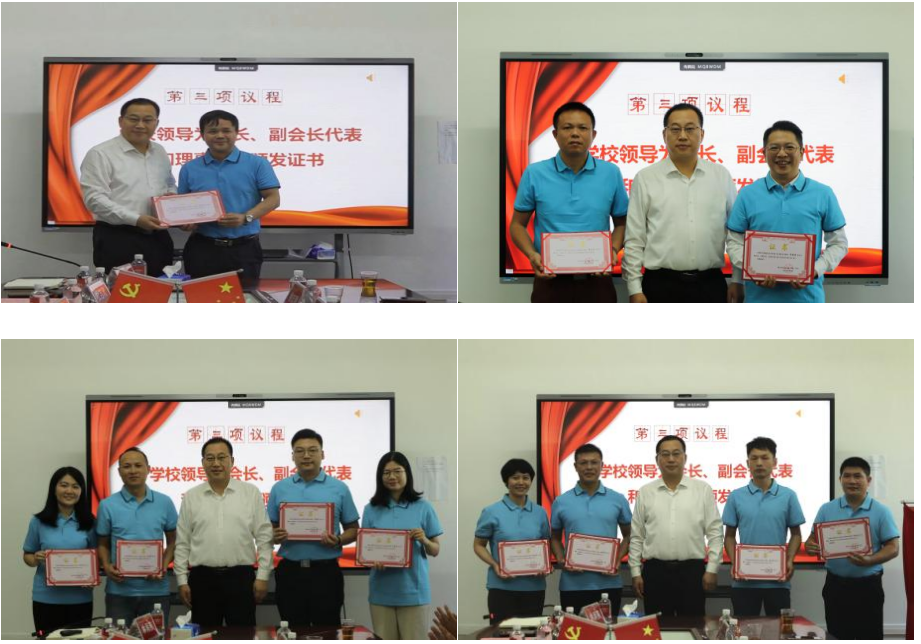 学校领导为黄永超等四位校友捐赠代表颁发证书
