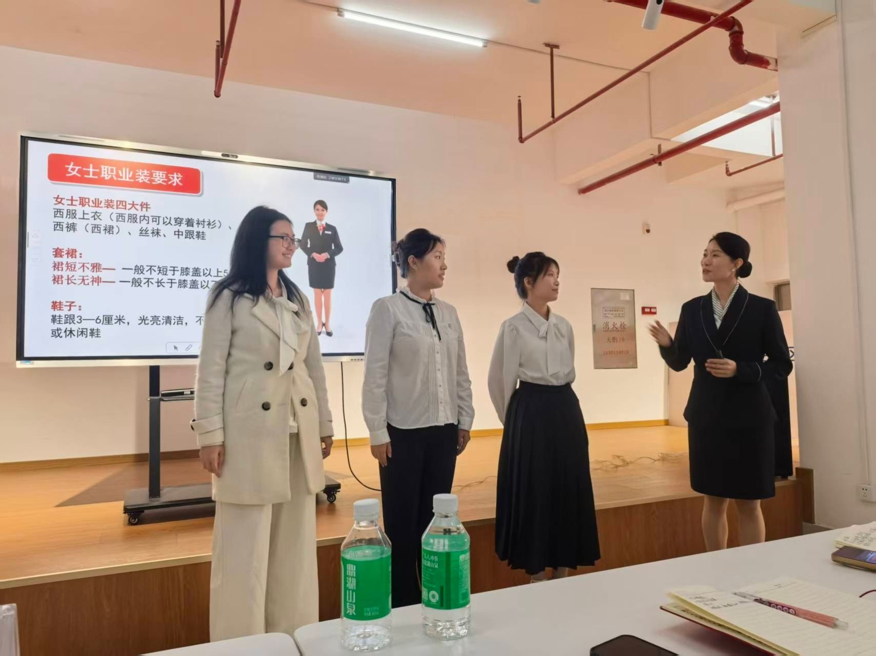 会议后,宣讲团举行了宣讲礼仪培训,由学工部思政科的欧阳春子老师主讲。欧阳老师不仅通过小游戏活跃了现场的气氛,带动成员们进入学习氛围,还从礼仪概述、职业礼仪形象、工作礼仪以及礼仪实训四个方面对成员们进行培训,有效提高了成员们的宣讲能力水平。她认为,良好的准备是宣讲工作的前提保障,宣讲团成员们应培养宣讲的基本素养,用青春之声,讲好红色故事!