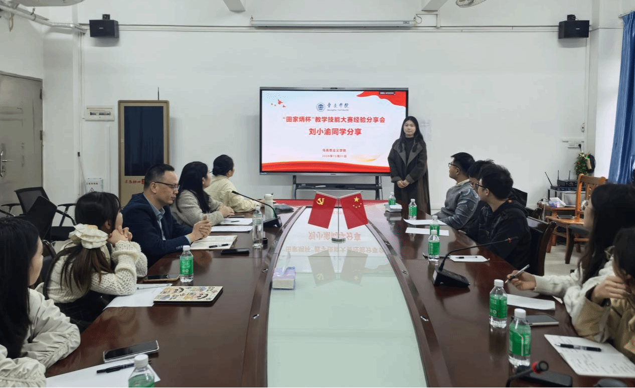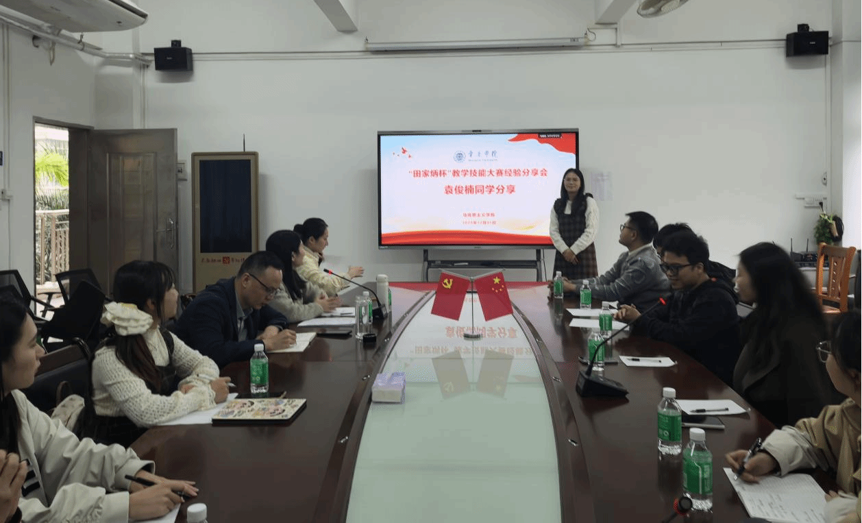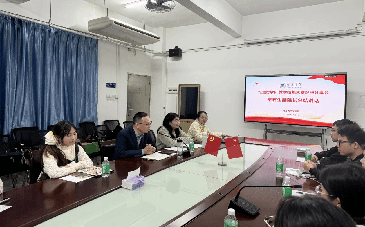 本网讯 2025年12月31日,学院举办“田家炳杯”研究生教学技能大赛经验分享会。旨在总结参赛经验、分享参赛心得,提升研究生的教学能力与综合素养。学院副院长谢石生,研究生秘书陈晓仪以及2024级、2025级学科教学(思政)全体研究生参加本次活动。