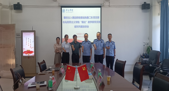 会议伊始,曹和修对肇庆出入境边防检查站执勤二队党支部同志们的到来表示热烈欢迎,并介绍了“概论”教学部教师党支部的基本情况以及支部近年来取得的党建成绩。他希望两个党支部能够以党建为媒介,紧贴各自特色开展党建共建工作,用党建为引领,强化优势互补,以高质量党建共建推动各项工作的高质量发展。