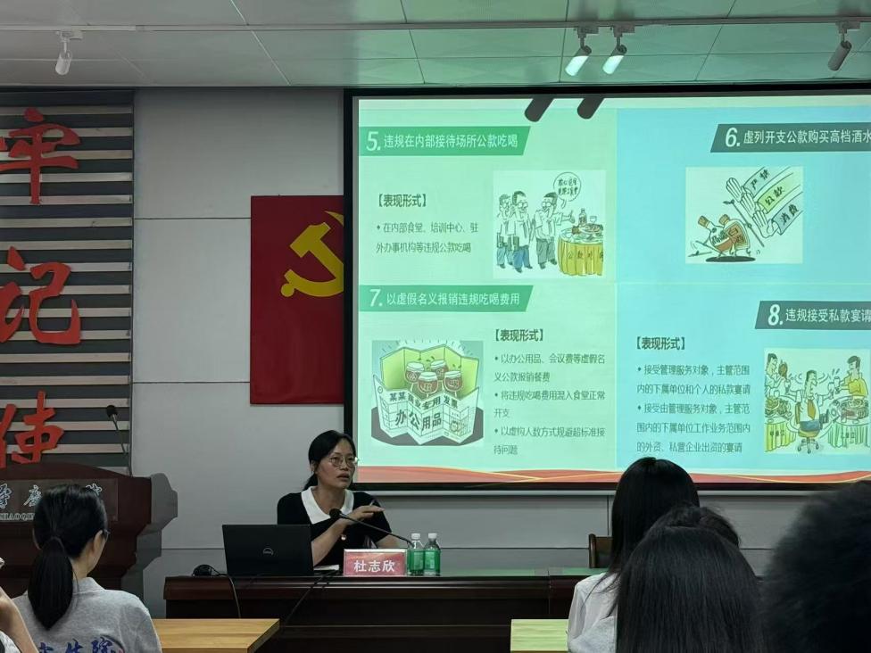 随后,党委副书记杜志欣以《加强廉洁文化建设,夯实廉政思想根基》为题,为全体党员讲授了一堂深刻的专题党课。