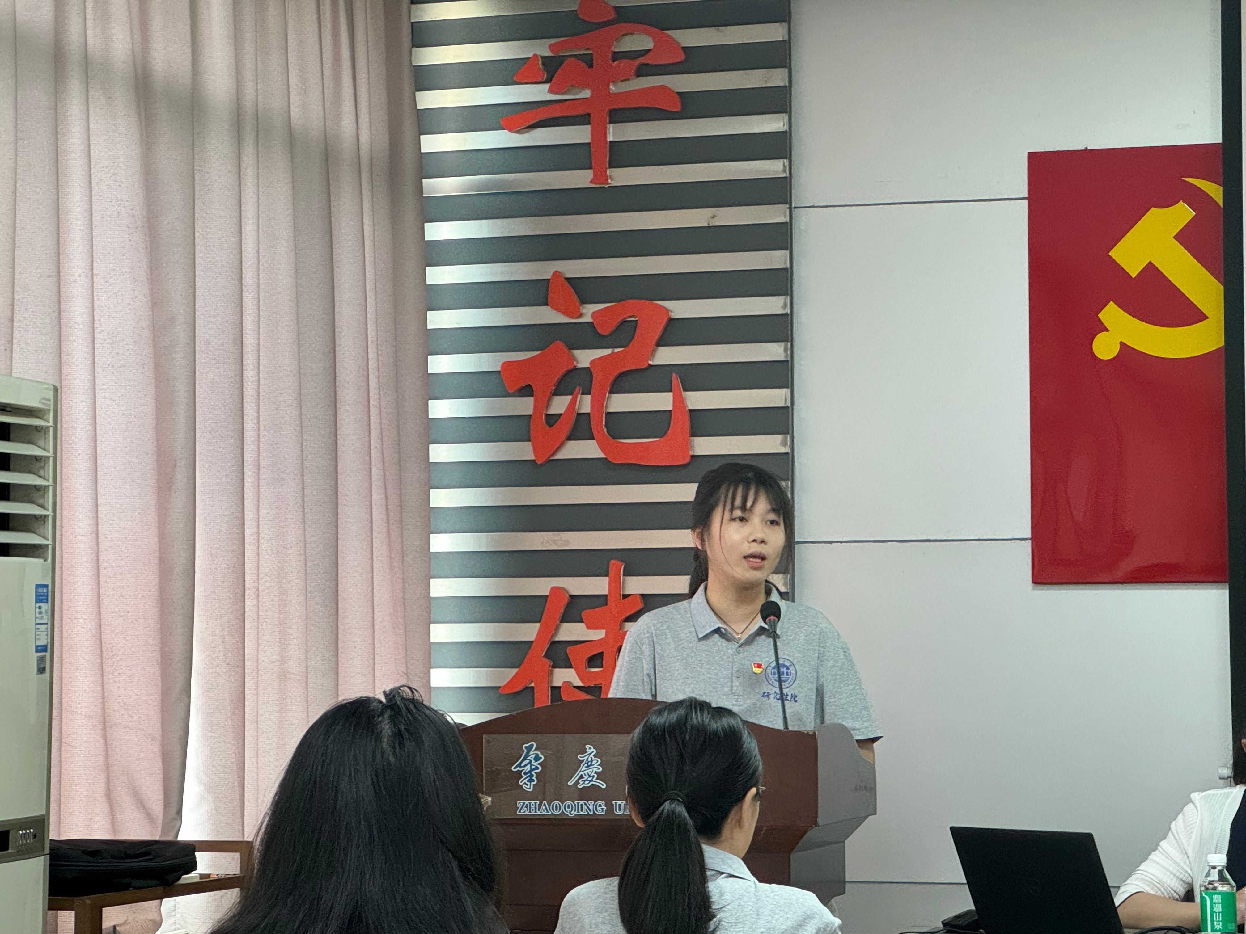 2023 级学科思政学生刘小渝作为新入党预备党员代表上台发言。她紧密结合自身专业特色与成长经历,从深化理论学习、践行育人使命、永葆先锋本色三个维度,向党组织作出郑重承诺。她表示,在今后的学习与生活中,将时刻牢记共产党员的初心使命,以党员的高标准严格要求自己,不断提升综合素质,发挥模范带头作用,为党和人民的教育事业贡献自己的力量。