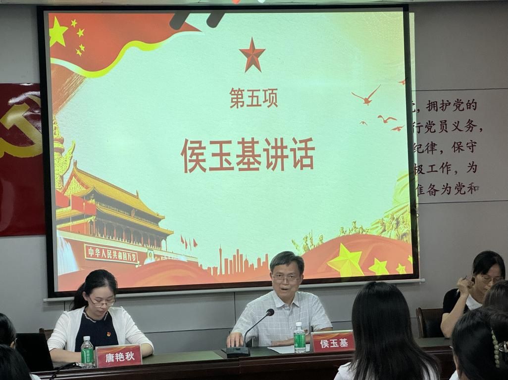 学院党委书记侯玉基代表学院党委向新入党预备党员表示热烈祝贺,他提出各位党员要坚定理想信念,筑牢信仰之基,补足精神之钙;持续加强学习,不断提升政治素养与专能力;严守党的纪律,自觉维护党的形象与团结统一;勇于担当作为,在各项工作中冲锋在前,充分发挥先锋模范作用,将无私奉献作为终身坚守的课题,在新时代新征程中书写属于党员的壮丽篇章。