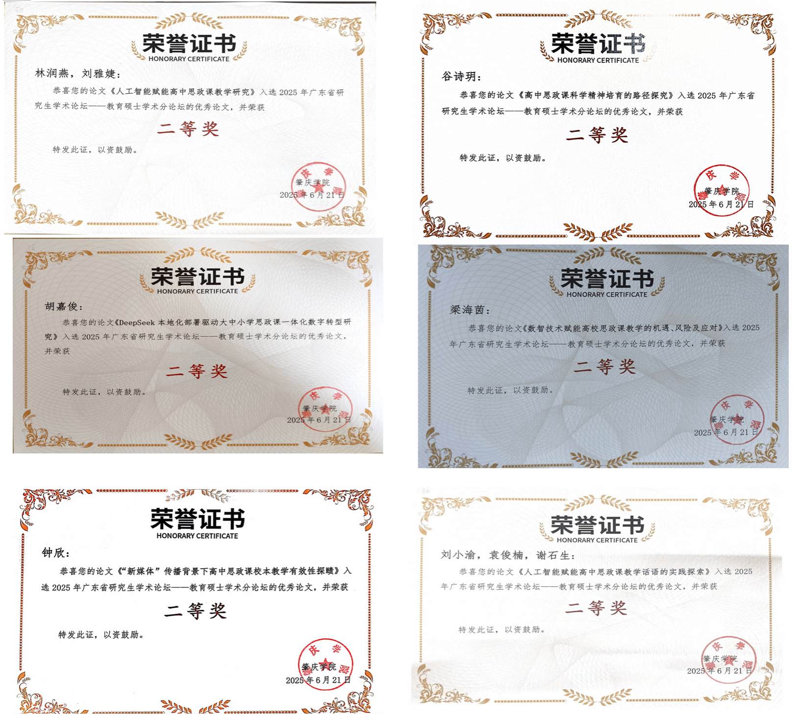 在论坛优秀论文评选中,我院钟欣、梁海茵、胡嘉俊、刘小渝、袁俊楠、刘雅婕、谷诗玥7名研究生提交的6篇论文入选论坛并全部荣获二等奖。此次获奖不仅是对研究生们学术功底的肯定,也是对我院研究生培养成效的肯定。
