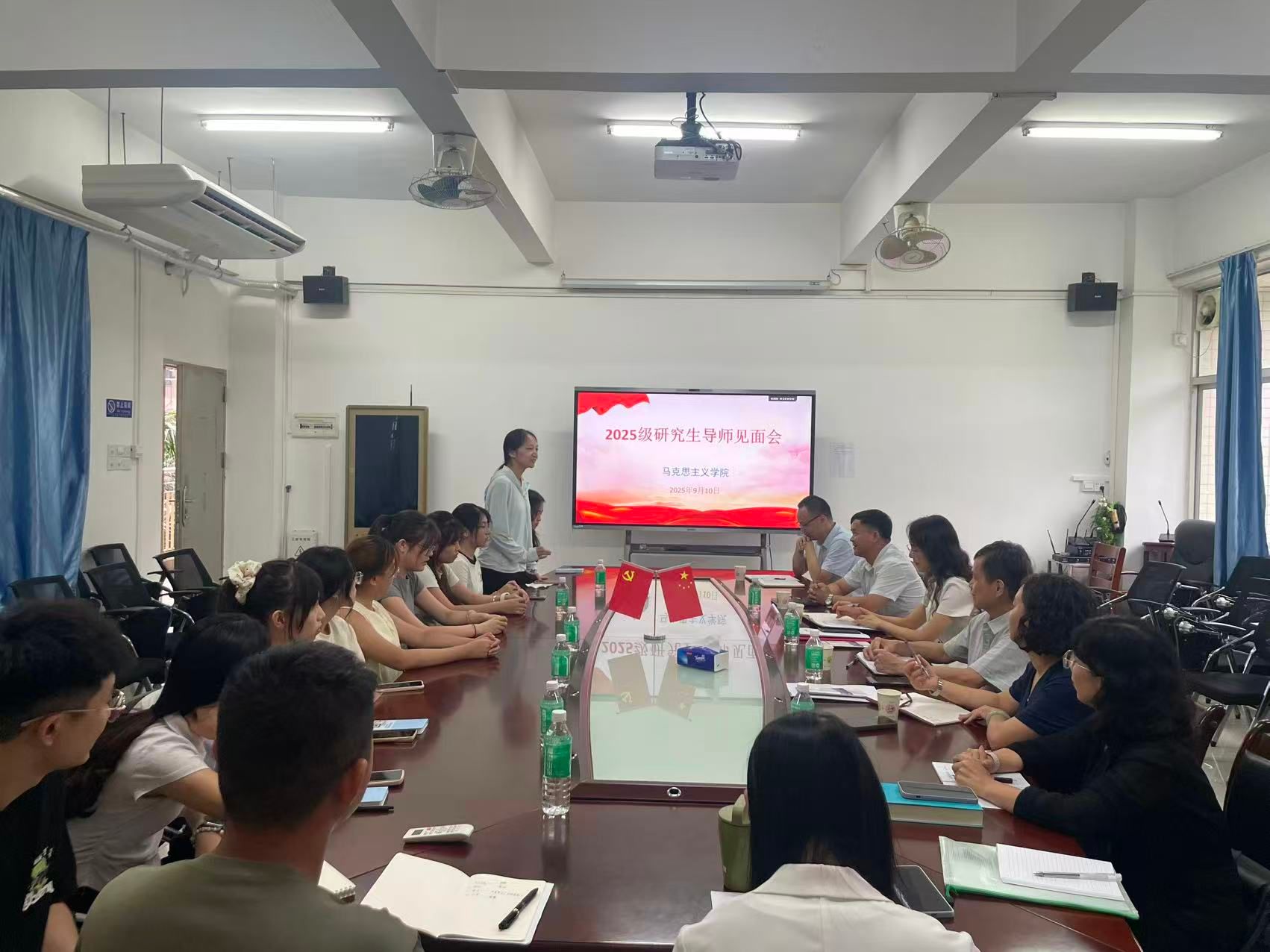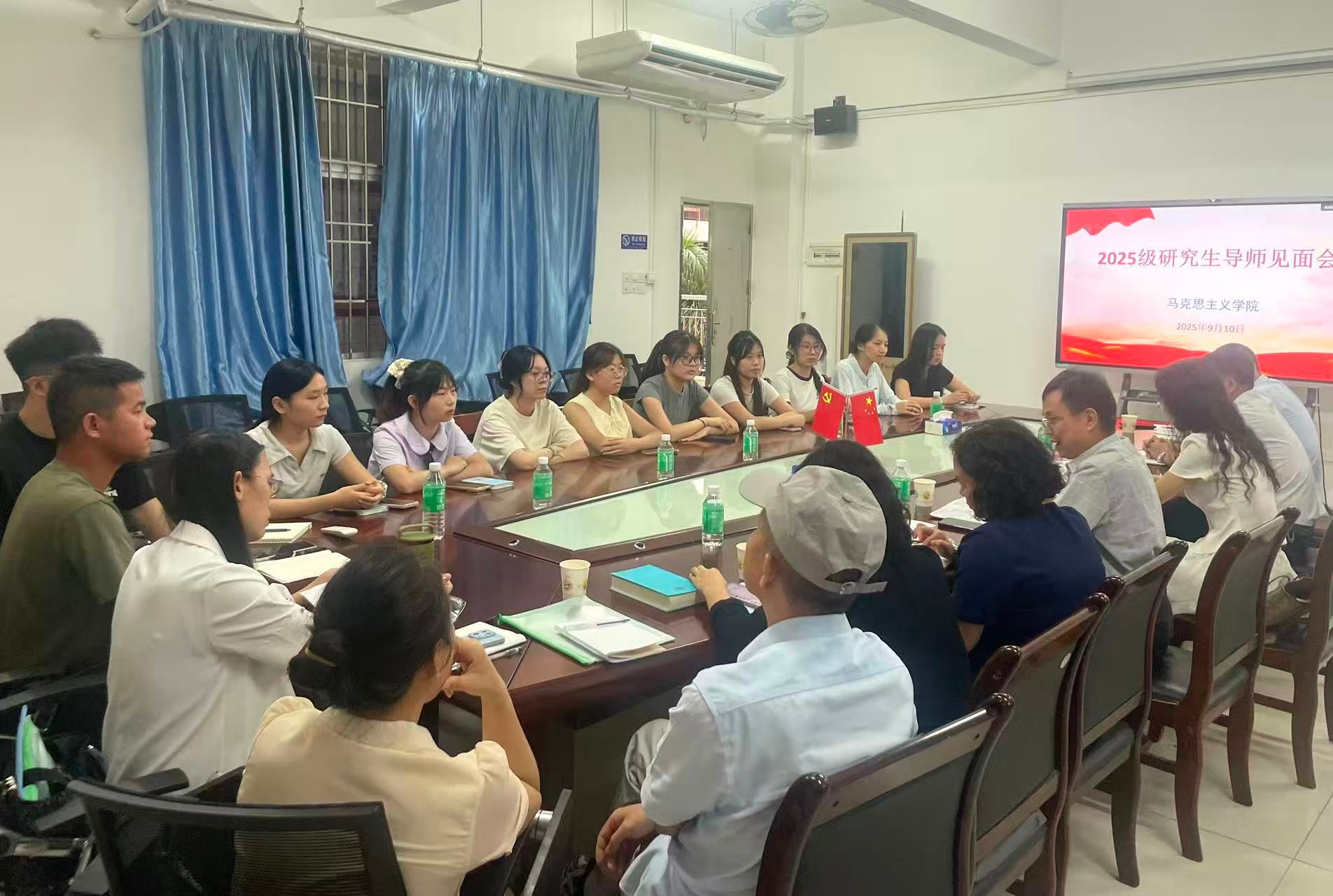 本网讯 9月10日下午,学院在学院317会议室召开2025级学科教学(思政)研究生导师见面会。院长曹和修主持会议,校长李琴与研究生导师代表以及2025级全体研究生参加会议。