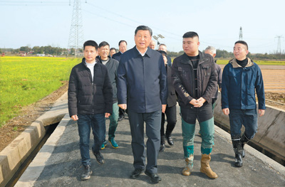 3月18日至21日,中共中央总书记、国家主席、中央军委主席习近平在湖南考察。这是19日下午,习近平在常德市鼎城区谢家铺镇港中坪村,同种粮大户、农技人员、基层干部亲切交流。