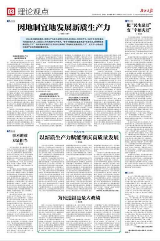 《西江日报》2024年3月23日刊发我院黎锐楷署名的理论文章,题目为《以新质生产力赋能肇庆高质量发展》。