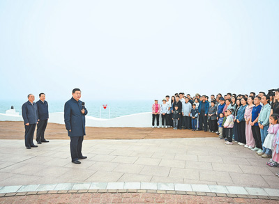 本报济南5月24日电 中共中央总书记、国家主席、中央军委主席习近平近日在山东考察时强调,山东要在全国发展大局中定好位、挑大梁,完整准确全面贯彻新发展理念,以进一步全面深化改革为动力,继续在服务和融入新发展格局上走在前、在增强经济社会发展创新力上走在前、在推动黄河流域生态保护和高质量发展上走在前,加快建设绿色低碳高质量发展先行区,打造高水平对外开放新高地,奋力谱写中国式现代化山东篇章。