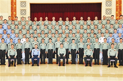 5月23日上午,习近平在济南亲切接见驻济南部队上校以上领导干部,代表党中央和中央军委向驻济南部队全体官兵致以诚挚问候,并同大家合影留念。张又侠陪同接见。