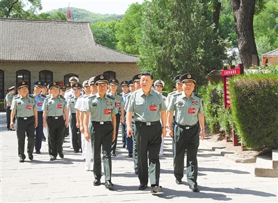 6月17日至19日,中央军委政治工作会议在陕西延安召开。中共中央总书记、国家主席、中央军委主席习近平出席会议并发表重要讲话。这是17日下午,习近平带领军委一班人和各部门各单位主要负责同志瞻仰王家坪革命旧址。