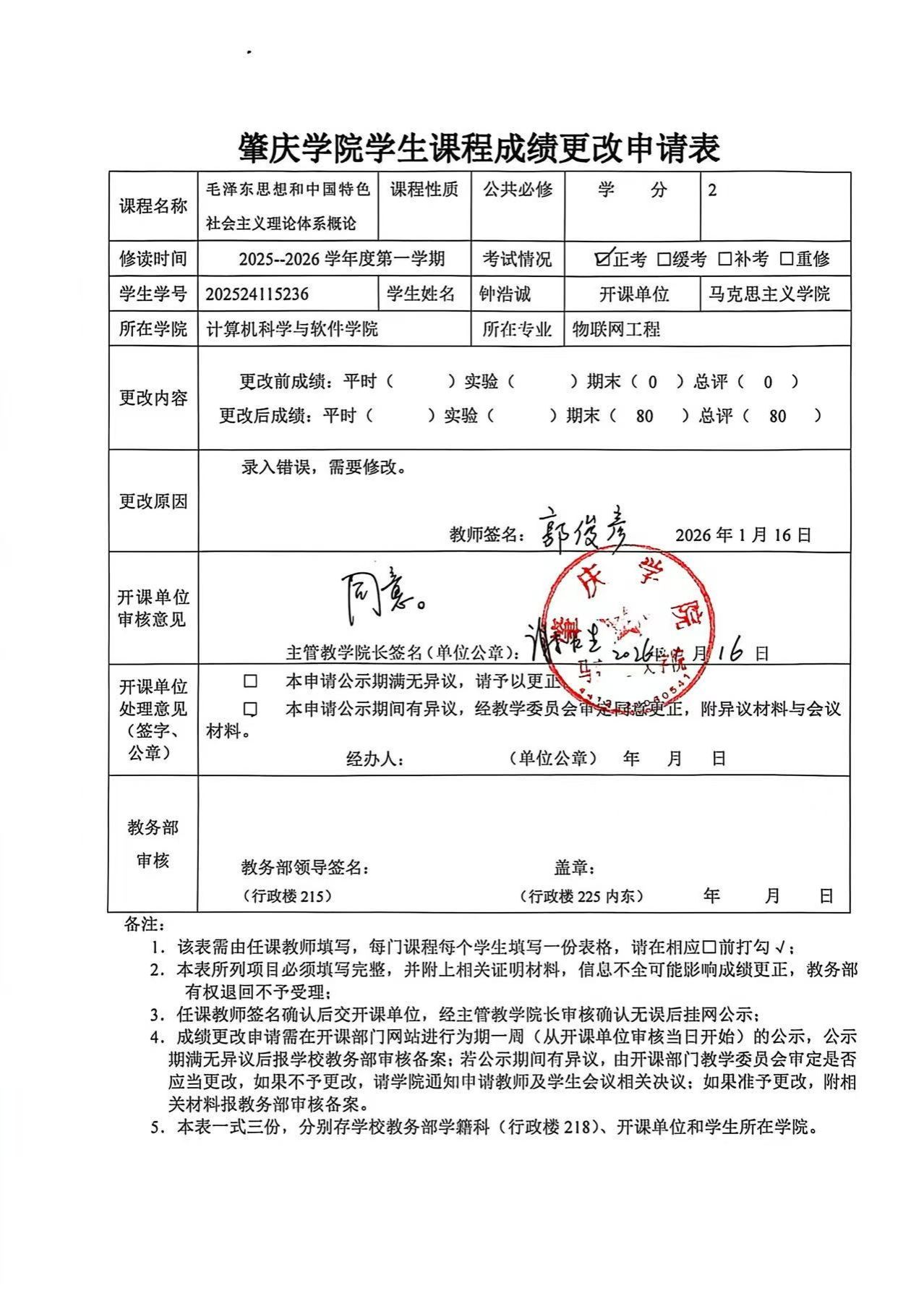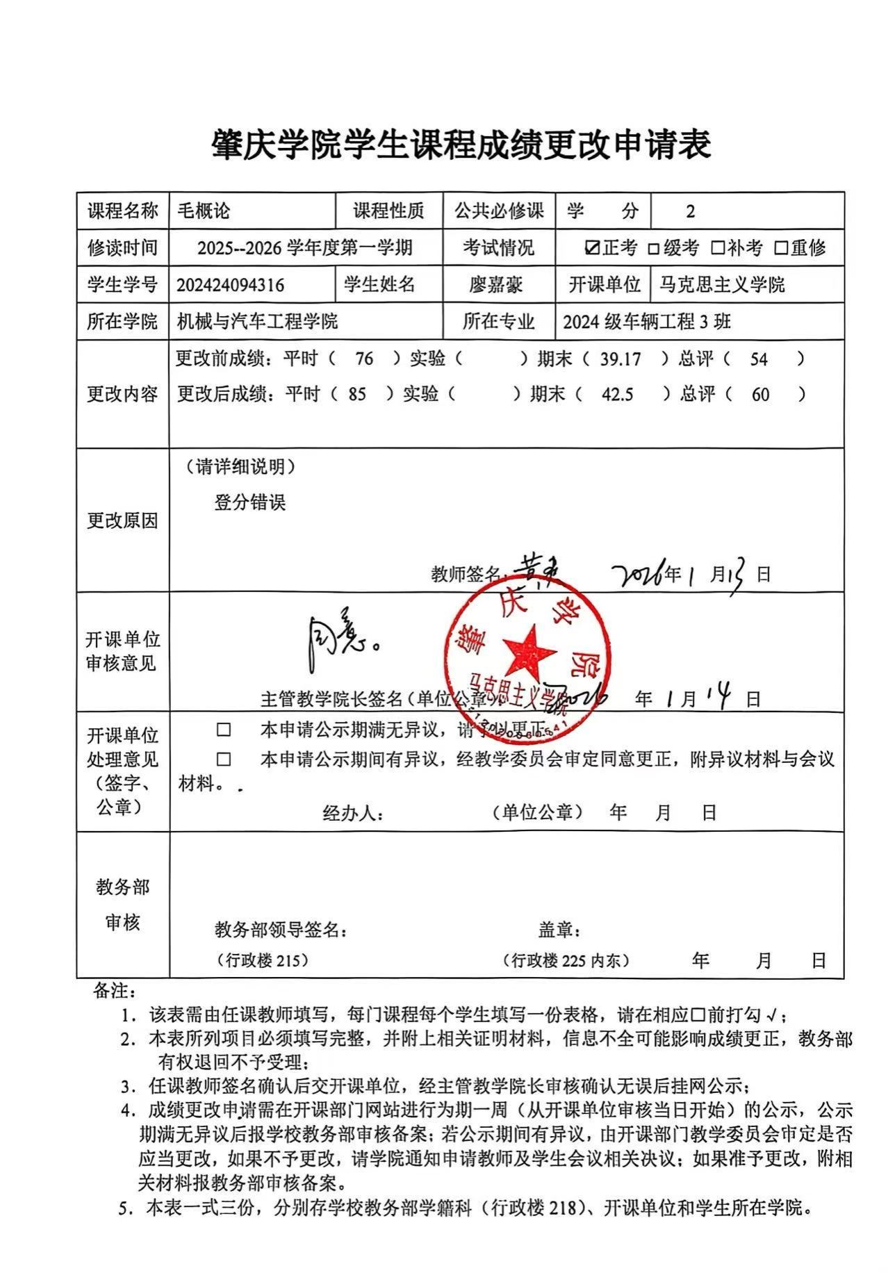 成绩更改公示