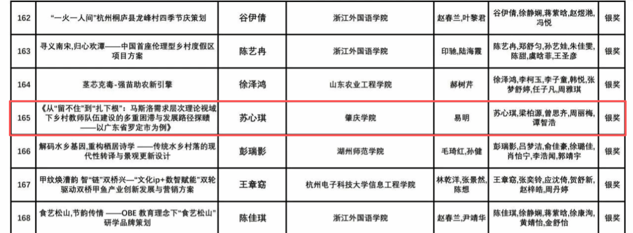 此次在全国性赛事中脱颖而出,既是对马院学子专业素养与实践能力的有力肯定,也彰显了学院对人才培养的成效和服务国家乡村振兴战略的显著成果。接下来,学院将继续激励我院学子深耕专业领域,以赛促学、以赛促研,在助力乡村振兴的道路上贡献更多青春智慧与力量。