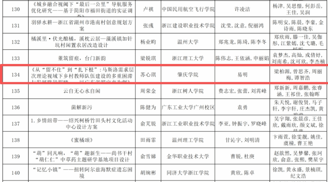此前,24级思政2班苏心琪同学作为项目负责人,连同项目成员梁柏源、曾思齐、周丽梅、谭智浩等思政专业学生,在学院易明老师的专业指导下组建项目团队,凭借对专业知识的深入理解与思考,历经层层选拔,成功入围决赛,代表学校出征第五届全国大学生乡村振兴大赛主体赛。团队聚焦乡村教师队伍建设这一乡村治理类关键课题,深耕《马斯洛需求层次理论下乡村教师队伍建设的现实困境与发展路径探析——以广东省罗定市为例》项目,反复打磨调研成果与解决方案,凝练实践创新亮点,为赛事角逐做好充分准备。
